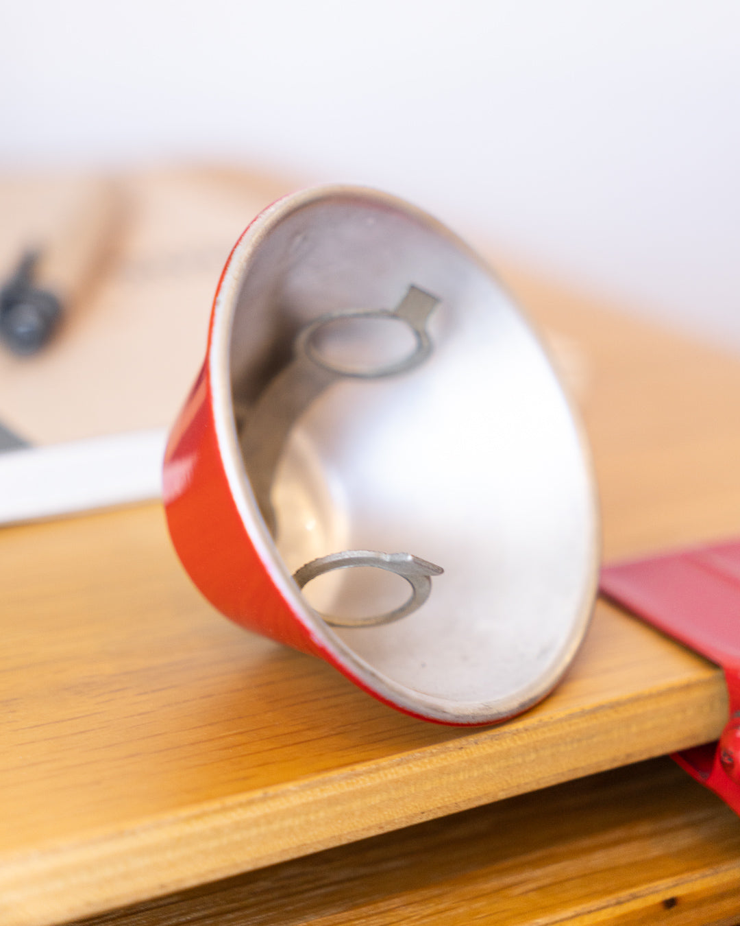 This mushroom-shaped Space Age clip lamp hides one of the cleverest shade systems ever designed — it clicks directly onto the bulb. Minimalist, fun, and practical. Ideal as a reading light, shelf lamp, or bedside accent.