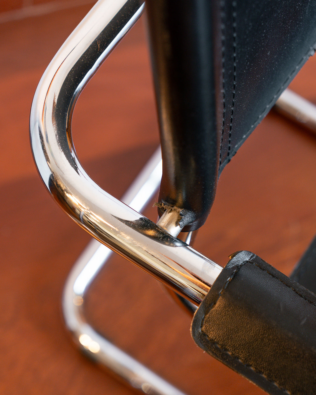 A timeless Bauhaus-inspired chair in the style of Marcel Breuer’s MG5, defined by its tubular construction and understated elegance. The black frame gives it a strong graphic presence while remaining versatile and easy to integrate into modern, industrial or minimalist interiors.